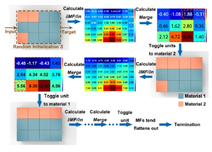 2022年提出了一种面向梯度的二值搜索(GBS)算法,它为传统的DBS 方法提供了一种替代的补充。我们以折射率的梯度变化为参考,直接切换两种材料之间的材料分布,而不是连续更新材料的折射率。它保持了相对简单的实现程序,适度的优化效率和容易调整的特征尺寸,适合于有较大面积的器件。