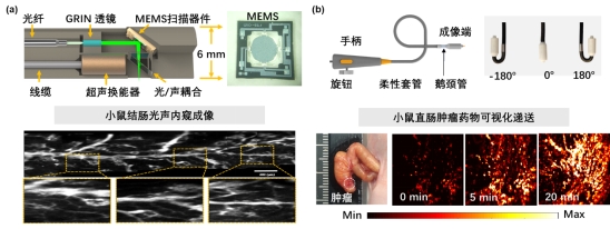 第五,基于微机电扫描微镜,研发了多种小型化光声显微镜成像设备,在内窥成像和脑功能方面得到了有效的应用,其主要工作如下: