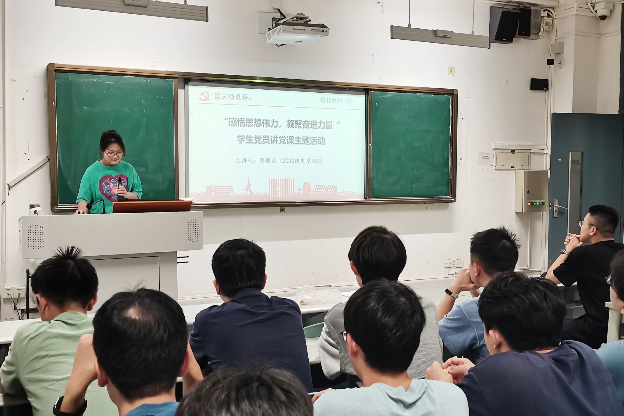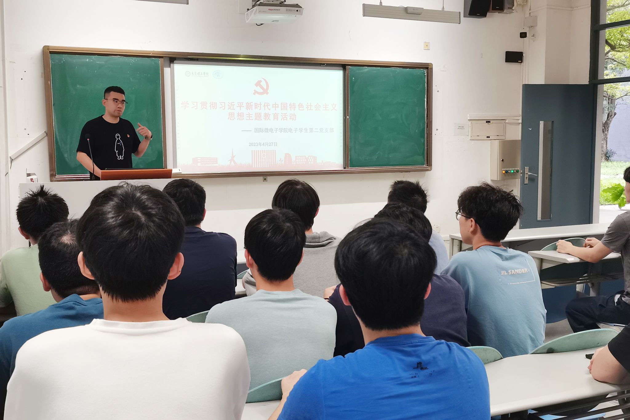 电子学生第二党支部在此次党日活动中开展了“感悟思想伟力,凝聚奋进力量”学生党员讲党课,学生党员结合主题教育学习体会和感悟讲微党课,从习近平新时代中国特色社会主义思想中汲取不懈奋斗的动力,汇聚起奋进新征程、建功新时代的磅礴伟力。