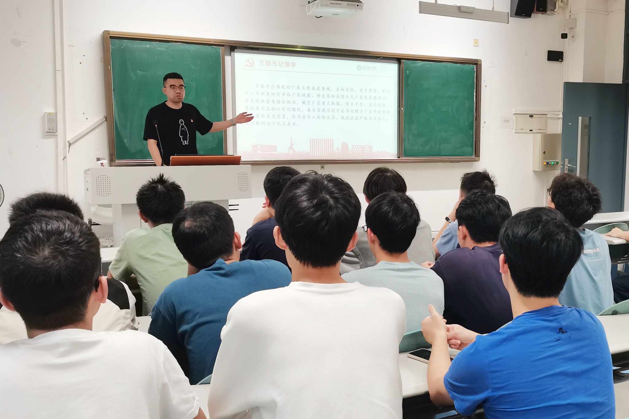 支部书记贾彬带领大家学习习近平在中央主题教育工作会议上的重要讲话精神和习近平总书记视察广东重要讲话,重要指示精神,传达了全省主题教育工作会议和学校主题教育动员部署会议精神,他指出,习近平总书记深刻阐述了开展主题教育的重大意义和目标要求,主题教育要牢牢把握“学思想、强党性、重实践、建新功”的总要求,开展主题教育的根本任务是坚持学思用贯通、知信行统一,把习近平新时代中国特色社会主义思想转化为坚定理想、锤炼党性和指导实践、推动工作的强大力量,使全党始终保持统一的思想、坚定的意志、协调的行动、强大的战斗力,努力在以学铸魂、以学增智、以学正风、以学促干方面取得实实在在的成效。