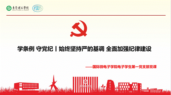 电子学生第一党支部围绕“学条例、守党纪--始终坚持严的基调,全面加强纪律建设”开展主题党课,支部书记陈亚莉主讲,支部全体党员参加。
