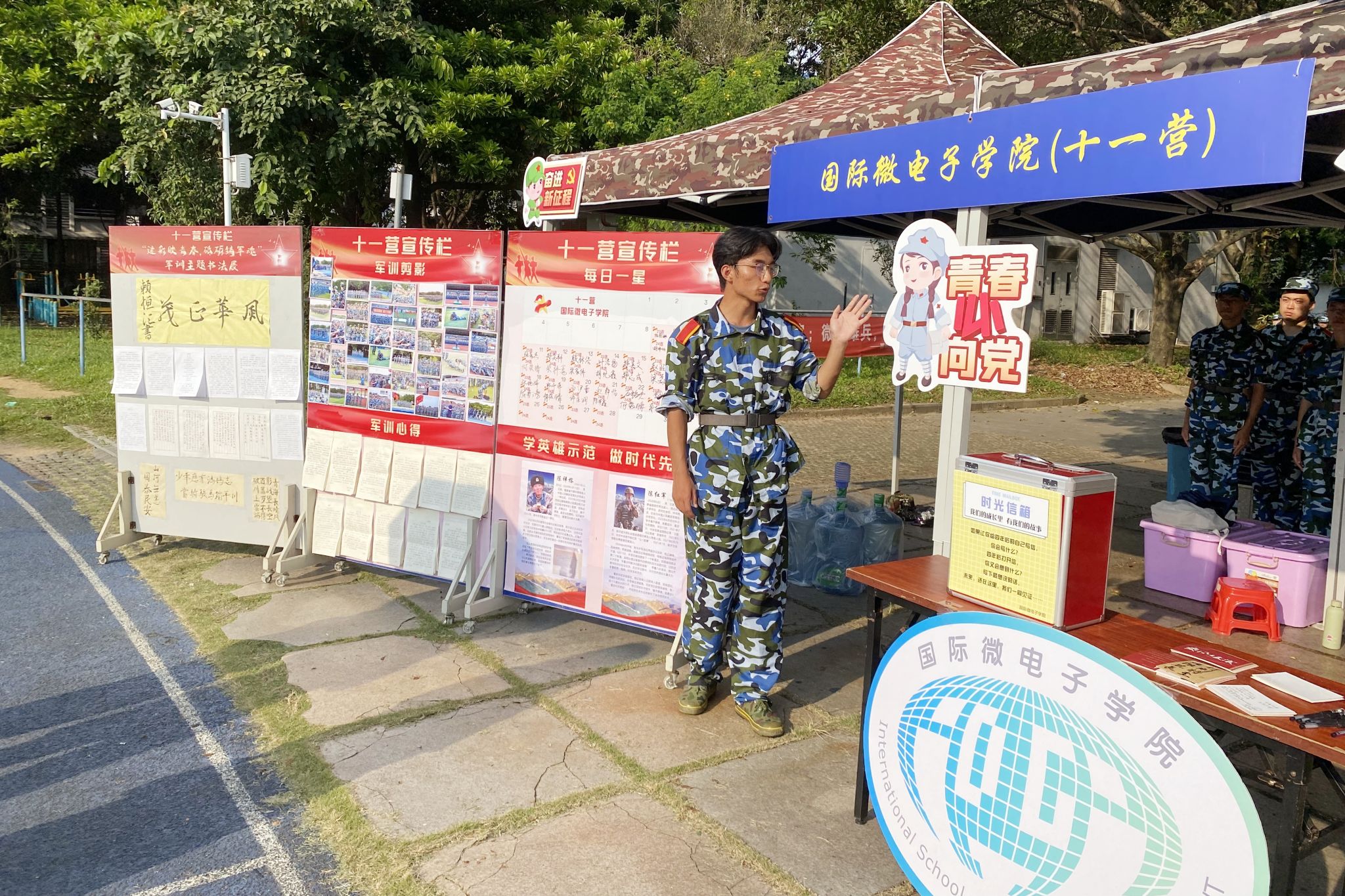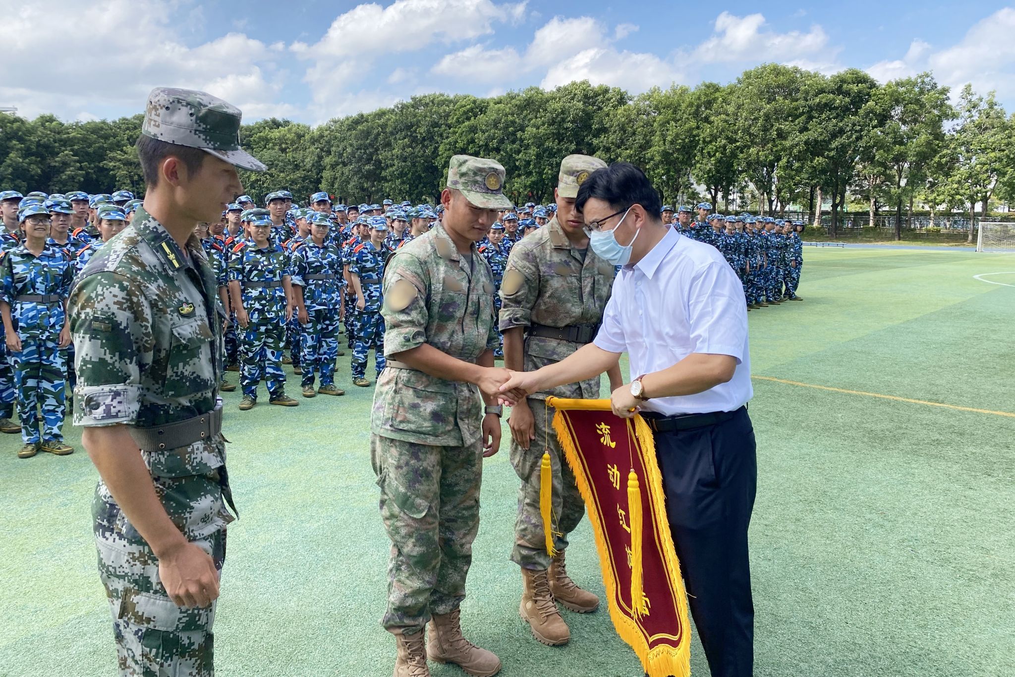军训场地,厕所偷拍 党委书记、执行院长任斌代表学院向军训教官授予“流动红旗营”荣誉锦旗。
