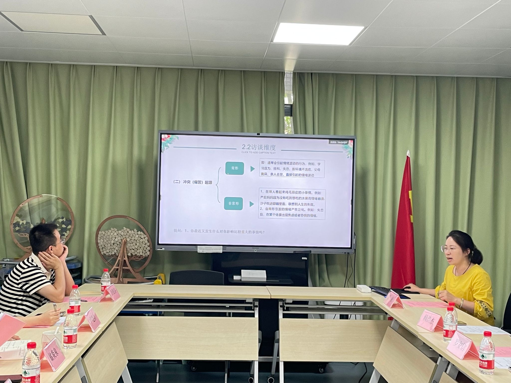 随后,会议进入第二项议程,由辅导员陈亚莉老师和辅导员贾彬老师开展新生班主任培训。