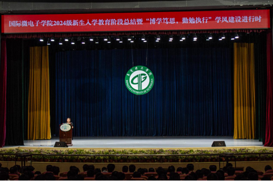 活动在庄严的宣誓仪式中拉开序幕,24级电子信息工程卓越1班学生代表崔雨欣同学上台带领全体学生进行宣誓,倡议大家要遵守学院规章制度,自觉维护学院荣誉形象,坚决做到“四不”:上课不缺勤、手机不依赖、作业不侥幸、考试不作弊。唯有秉持诚实、勤奋和创新的学术精神,方能成为德才兼备的微电子人才,为国家和社会的发展贡献力量。