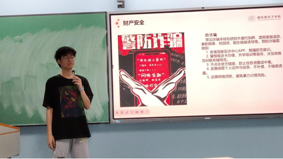 最后,班会开展了主题为“筑牢安全防线”的安全教育。通过案例分析和互动讨论,同学们深刻认识到安全的重要性,并学会了在日常生活中如何保护自己,进一步增强了安全防范意识。