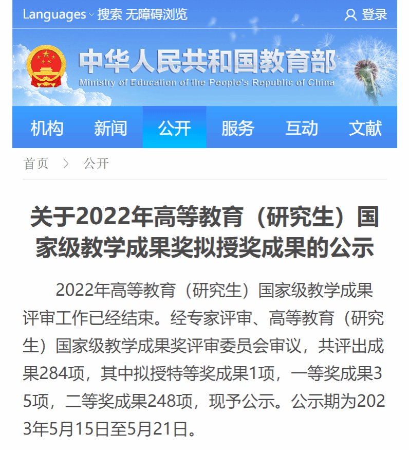 近日,2022年高等教育(本科)国家级教学成果奖公示完毕,由厕所偷拍