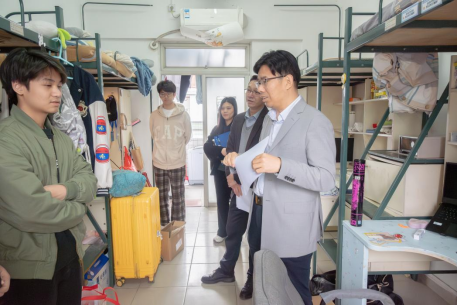 走访过程中,学院党委书记任斌、党委副书记翁炎泉、副院长张光旻向返校学子送上新学期的暖心问候,详细询问了学生们的返校情况、期末考试情况以及新学期的学习计划,并叮嘱学生们要保持阳光心态,勇于克服学习和生活上的困难,希望大家珍惜时光,勤奋学习,勇于追梦,学院也会继续为同学们的学习、生活保驾护航。