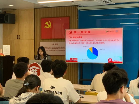 支部在4月以党的作风建设为主线,聚焦学生党员学术科研实践场景,构建涵盖制度知晓度、行为自律性等五维调研问卷,坚持问题导向原则。支部书记车梦瑶在活动现场用调研数据向党员展示了在学术规范认知等方面存在的薄弱环节。